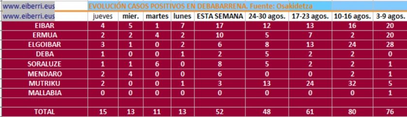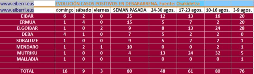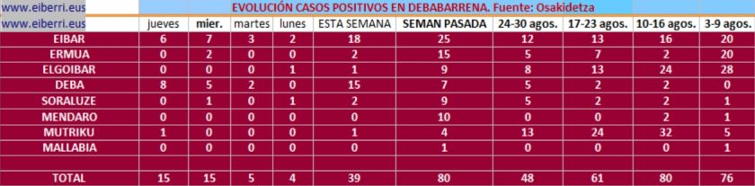 Además de Eibar y Deba, se han detectado dos casos en Ermua y uno en Mendaro En Euskadi fallecieron 46 personas con COVID como causa directa la semana pasada DEBABARRENA.- Aumentan los casos positivos en Debabarrena, en las últmas horas se han detectado 13 casos nuevos, 5 en Deba, otros cinco en Eibar, dos en …