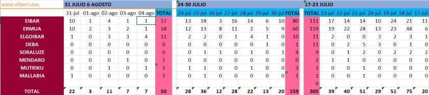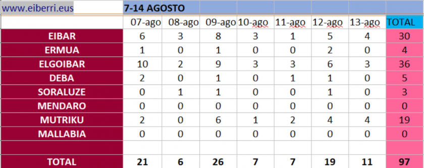 [eiberri.eus] Registrados 11 nuevos positivos, cuatro en Eibar, cuatro en Mutriku y tres en Elgoibar
