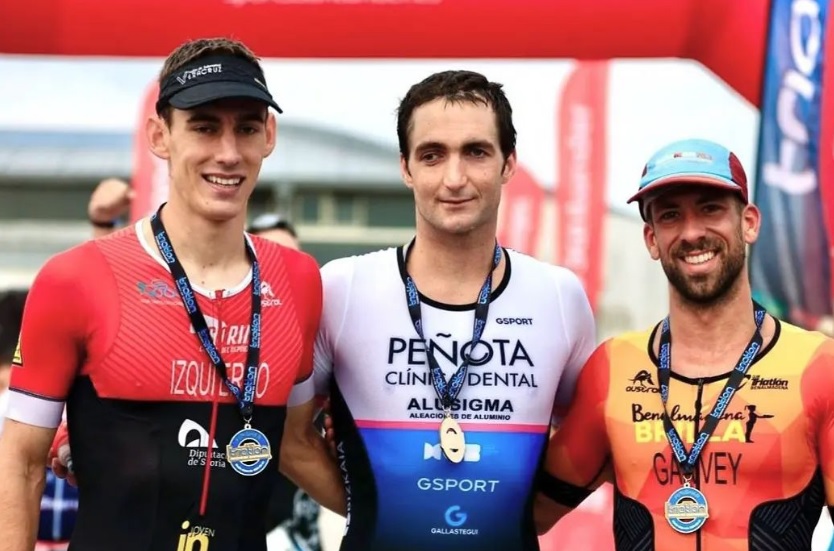 Junto a él subieron al podium Jaime Izquierdo que lograba el segundo puesto, con un tiempo de 03:44:03; mientras que la tercera posición fue para el triatleta del CT Benalmádena, Gonzalo Garvey, que con un tiempo de 03:46:30 cerraba el podio.