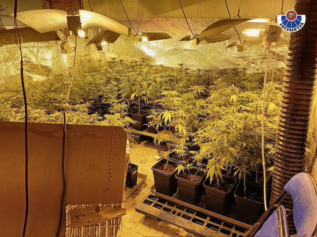 La Ertzaintza estableció un dispositivo de vigilancia, en el que sorprendieron a un hombre que accedió al interior de la nave y un cuarto de hora después abandonaba la estancia por la ventana. Una patrulla procedió a la identificación del sospechoso que portaba varias llaves entre sus pertenencias. El recurso policial comprobó que las llaves abrían las puertas de las dependencias, donde se encontraba una zona habilitada para un cultivo de marihuana con unas 150 plantas.