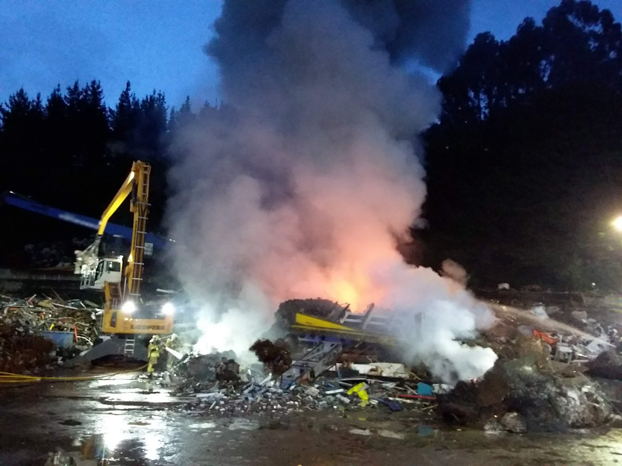 Imagenes incendio chatarrería #Mallabia, dotaciones parques #Iurreta y #Markina trabajando